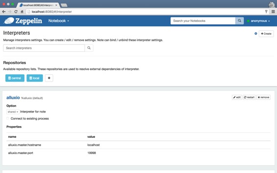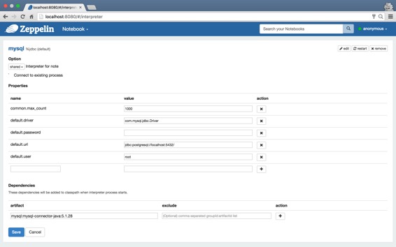 当你的代码需要外部库,而不是下载/复制/重新启动Zeppelin,您可以轻松地在此菜单中执行以下作业。