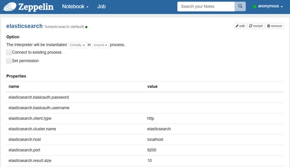 shield.user包含名称和密码(格式:)的值的属性username:password。有关Shield配置的更多详细信息,请参阅Shield参考指南。不要忘记,在解释器目录(ZEPPELIN_HOME/interpreters/elasticsearch)中复制屏蔽客户端jar 。