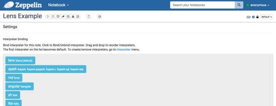 配置Lens解释器后,创建自己的笔记本,然后您可以绑定如下图像的解释器。
