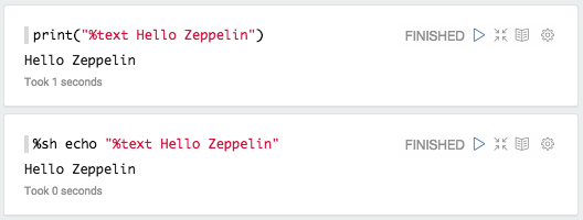 默认情况下,Apache Zeppelin使用text显示系统打印解释器响应作为纯文本。