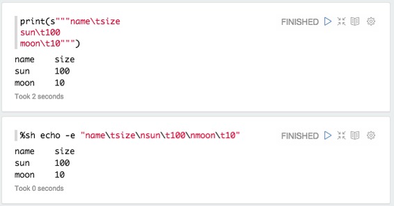 例如,如果您将具有由\n(换行符)和列以\t(tab)分隔的数据以第一行作为标题行分隔的数据