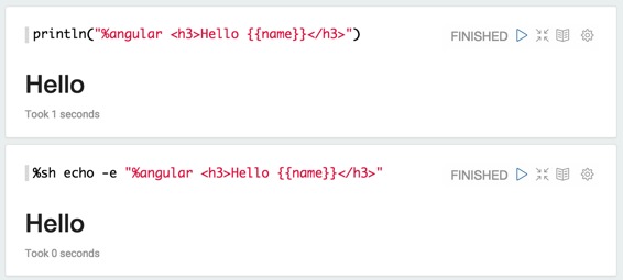 角度显示系统将输出视为AngularJS的视图模板。它编译模板并将其显示在Apache Zeppelin中。Zeppelin在您的解释器和您编译的AngularJS视图模板之间提供了一个网关。因此,您不仅可以从解释器更新范围变量,还可以在解释器中进行更新,这是JVM进程。